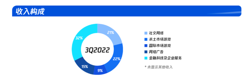 本季度腾讯金融及企业服务收入同比增长4%至448亿元人民币,占比32%,超过游戏收入的31%,为腾讯第一大收入来源。