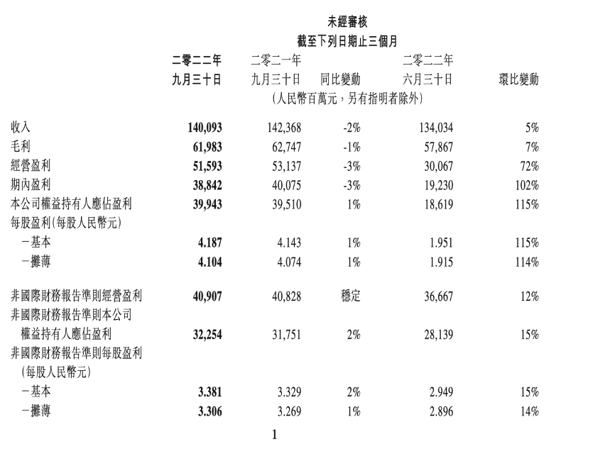 在人员方面,财报显示,截止2022年9月30日,腾讯共有108836名员工,对比上一季度减少了1979名员工。
