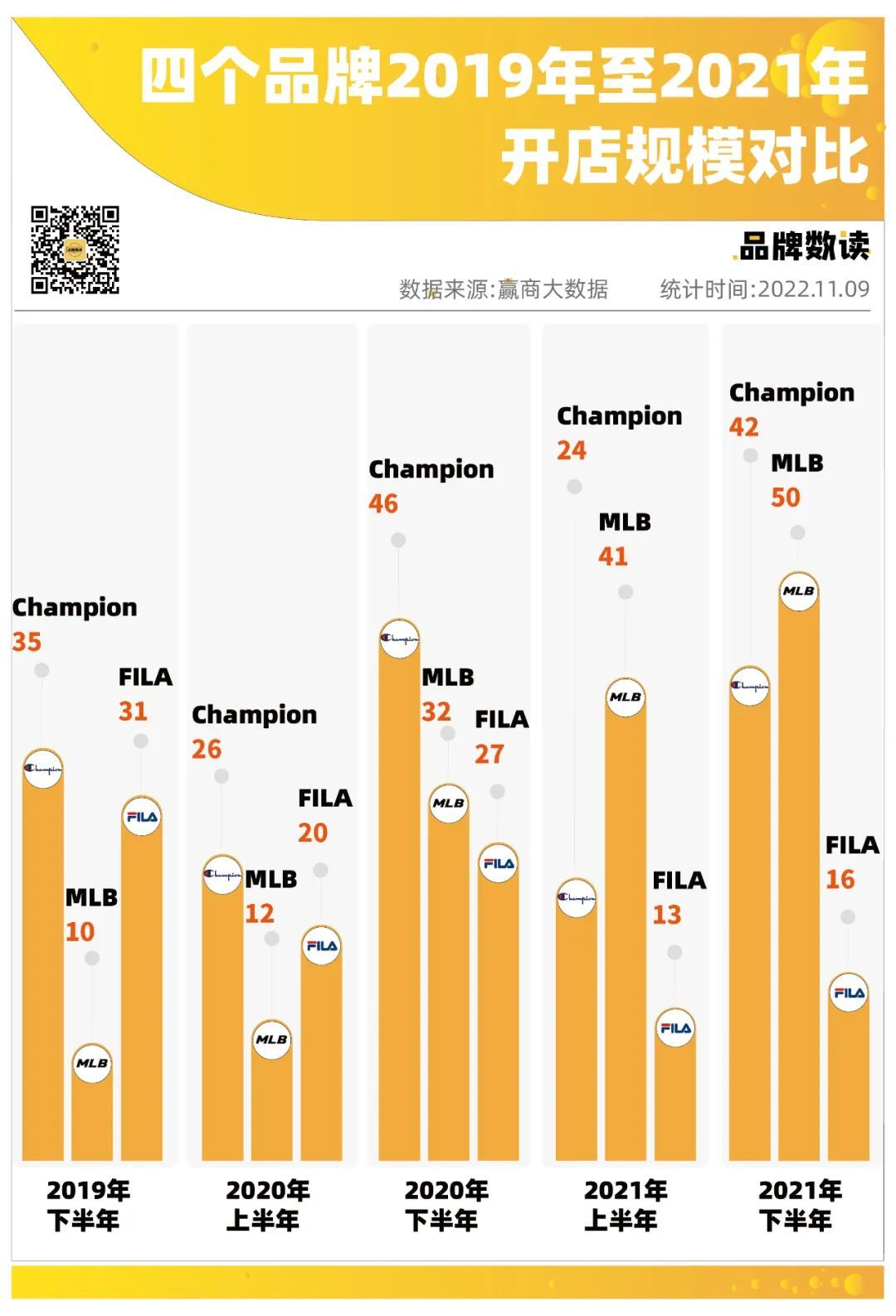 在开店势头上,进入2021年上半年,此前遥遥领先的Champion也开始被MLB反超。