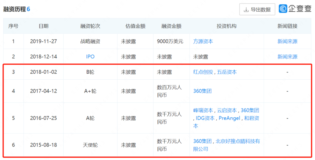 在360金融集团的成长道路上,360集团始终陪伴左右。企查查信息显示,在赴美上市前,360金融集团共计完成4轮融资,其中360集团参与3轮融资,其他投资者还有红点创投、五岳资本、峰瑞资本、云启资本、IDG资本、和君资本等知名机构。