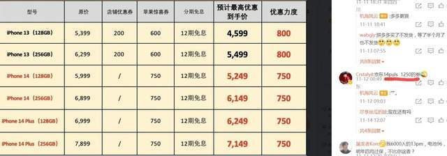 当然,iPhone 持续热卖,与各大电商平台给出的巨额补贴也有直接关系,比如双十一天猫给出了最高800的优惠力度,而京东更是针对iPhone 14 Plus开出了1250的神券,如此大额的平台补贴券,成本肯定不只京东平台单方面承担,虽然与苹果的具体分摊比例是商业机密,但也说明,苹果的旺盛销量,也是付出了一定的营销成本的。