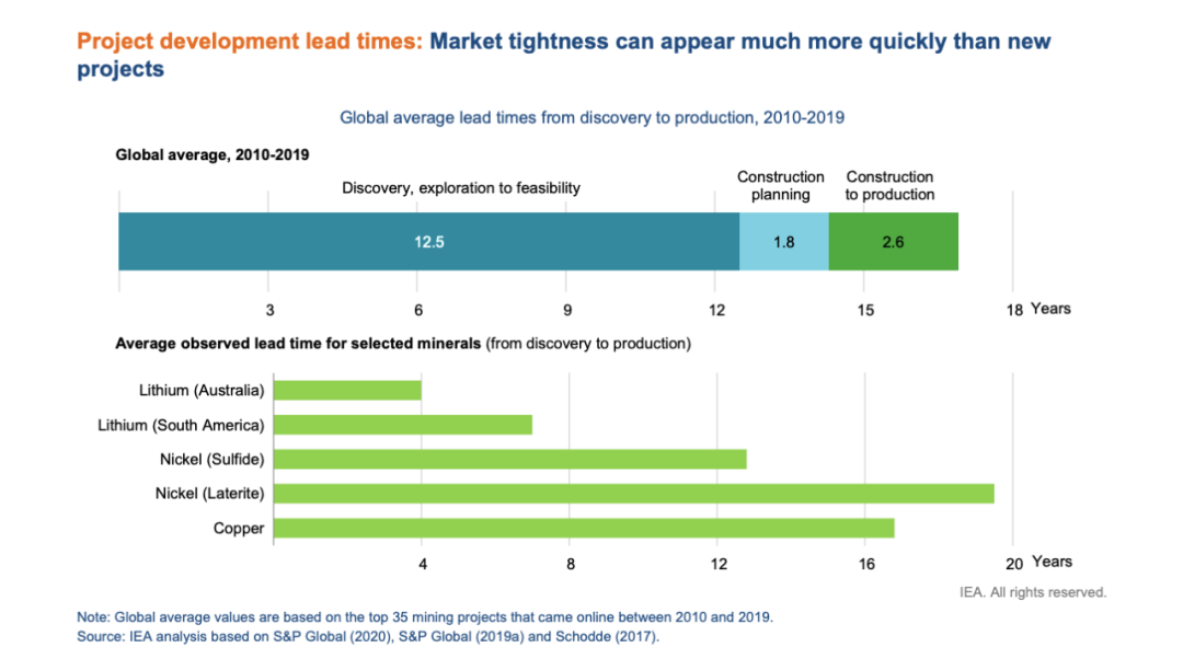 △ 2010年-2019年全球矿产项目开发时间(来源:IEA)