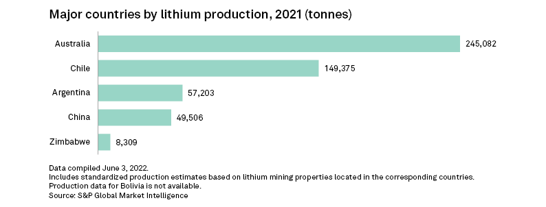 △ 2021年全球锂矿产量主要国家(来源:S&P Global)