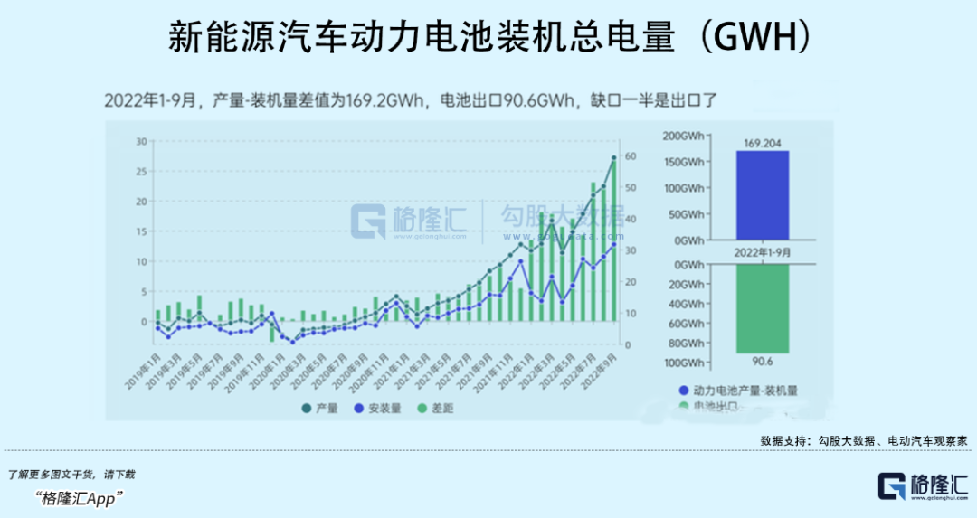 据高工锂电估计,今年中国动力电池出货量将达到490GWh,增长117%。今年1-10月,动力电池累计产量达到425.9GWh,增长166.5%。而截至今年2022年9月份,全国动力及储能电池基地产能规划超过5000GWh(其中动力电池超4800GWh)。