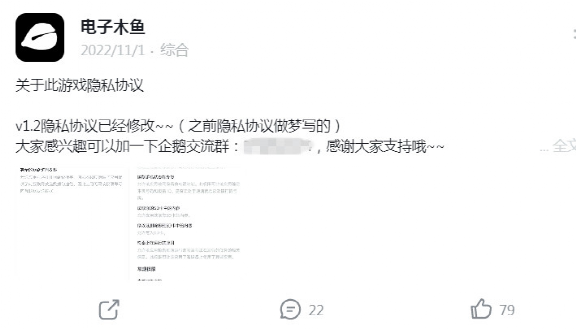 比如对雨流来说,他花在《用户隐私协议》上的时间远多于这款游戏的开发时间。一开始他想抄作业,从其他游戏里照抄用户协议,但却因为游戏索取不必要的个人信息而被玩家打了低分差评。可见如今不但是平台方对用户协议审核严格,普通玩家也越来越看重个人隐私。毕竟大家对恶意软件已经深恶痛绝。