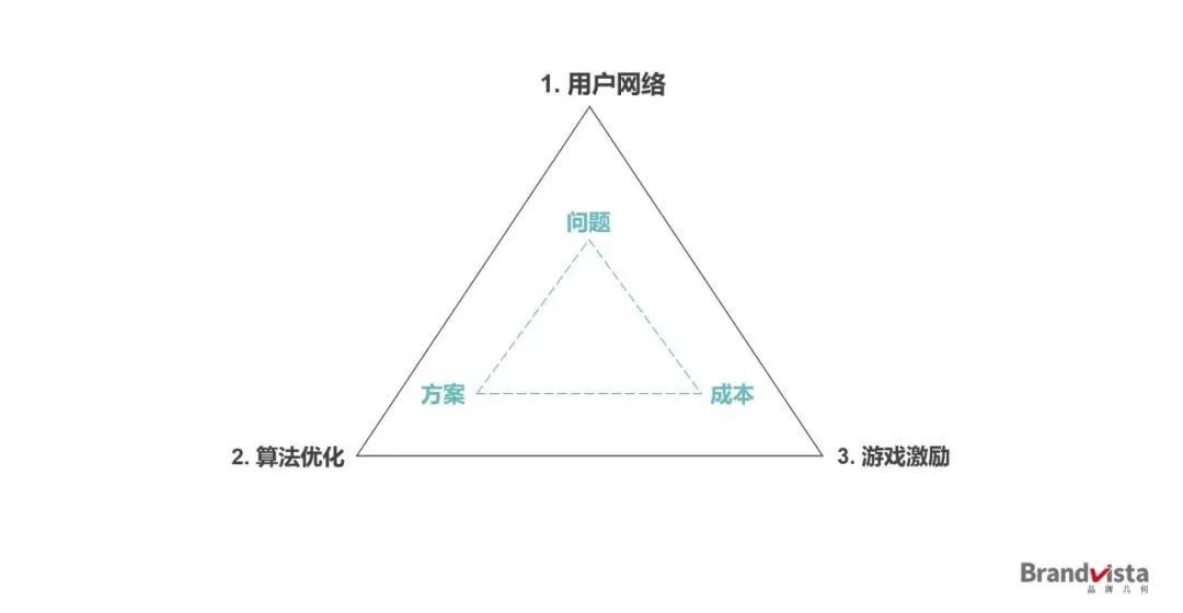 如何更形象地理解?我们把经典营销用一个三角形表达,这个可以叫经典营销的铁三角:问题、方案和成本。用户有一个意识到或者潜在的问题,源自欲望;企业组织资源和能力创造一种组合,成为解决方案;用户需要支付一定的成本和承担一定的风险。这个就是营销。