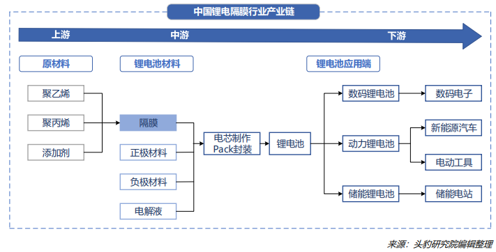 锂电池隔膜,是位于锂电池正负极之间的一层多孔薄膜,是锂电池四大主材之一(另外三种是正极、负极、电解液)。其主要功能是隔离电池正负极,防止短路,同时保证锂离子在充放电期间正常通过微孔通道以保证电池正常工作。隔膜的性能对锂离子电池的内阻、容量、循环性能、充放电电流密度以及安全性等关键指标有重要影响 。