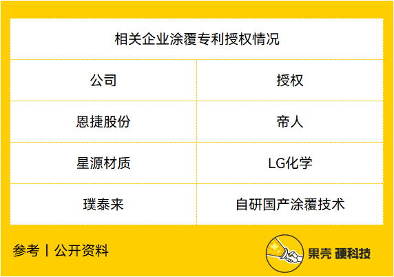 但涂覆工艺则有所不同。当前的涂覆仍以工艺和专利为主,核心专利主要由LG、帝人等海外企业把持,授权则被国内头部企业锁定,与设备类似具有排他性,会干扰竞争对手拓展相关业务。