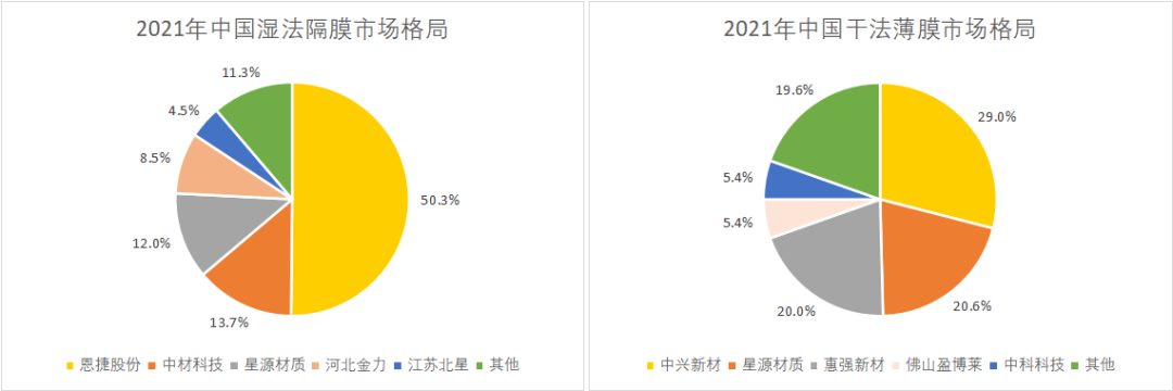 重资产、高投入的特征决定了入局隔膜行业比较困难,新晋参与者往往是具备一定规模、有打通供应链上下游需求的大型企业,对创业公司很不友好。而在行业内部,资金雄厚的头部生产商通常有更强的能力拓展产线,并提前锁定下游不断增长的订单需求,二三线企业则难以跟上,导致了强者恒强的竞争格局。