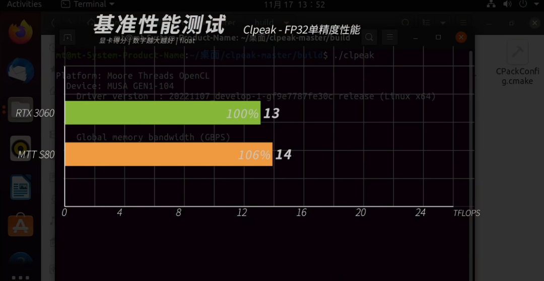 在纹理填充和像素填充这些 “ 偏门 ” 领域有不错的表现,甚至表现得比 3060 还好,在 FP32 ( 单精度浮点数 )算力这些体现显卡计算能力的地方表现得也 OK ,在 Linux 系统下也和 3060 打的有来有回。