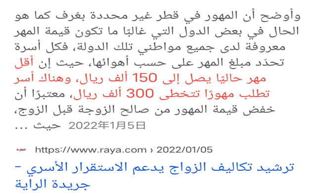 考虑到很多卡塔尔家庭的男孩不止一个,每次结婚都得出钱,这种昂贵的彩礼无疑会让他们不堪重负。