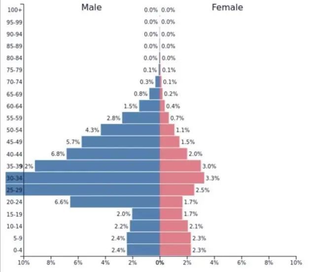 卡塔尔的外国劳工大多是以男性为主,年龄集中在18到60岁的青壮年段。