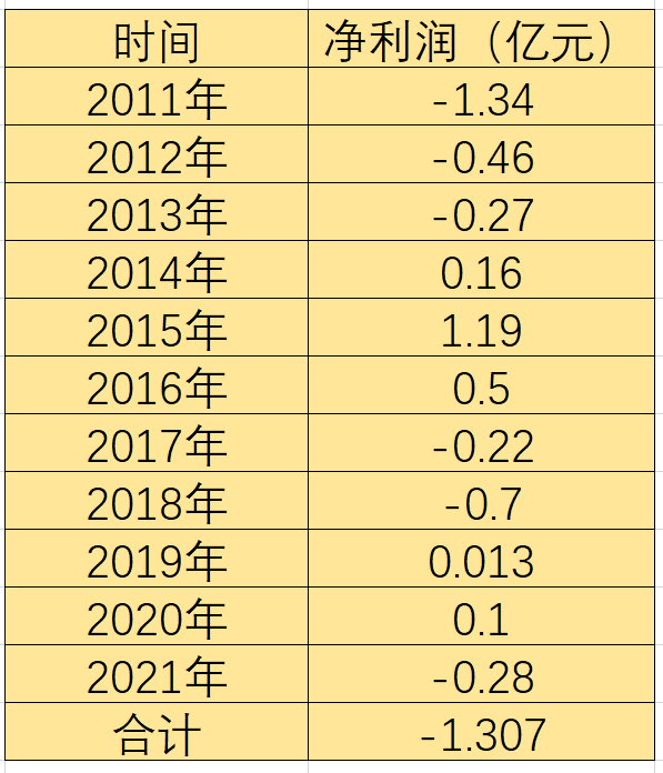 而此后的时间里,国金基金也是经常亏损。我们根据国金证券发布的历年年报统计到,2011年-2021年11年时间里,国金基金有6年时间净利润是亏损的,11年时间,净利润合计亏损1.3亿元。