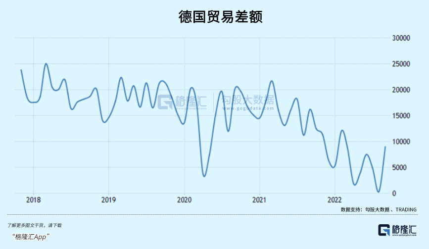 作为出口强国,德国近期的贸易差额竟一度趋近于0。