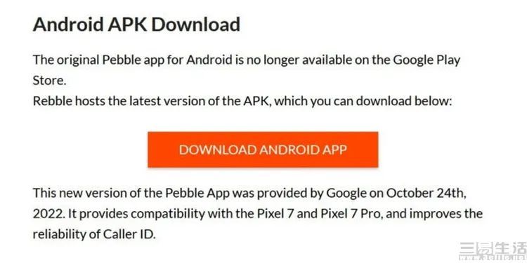 2022年10月29日,Pebble智能手表的用户论坛突然宣布,他们得到了来自谷歌方面的技术支持,正式推出Pebble Android APP的更新版本。与上一个版本相比,新版最大的改变在于完全兼容了Pixel 7系列机型的纯64位运行环境,允许那些刚刚换了新手机(或者未来即将换用其他纯64位Android机型)的用户,继续配对使用他们至少已有6年以上的老款Pebble智能手表。