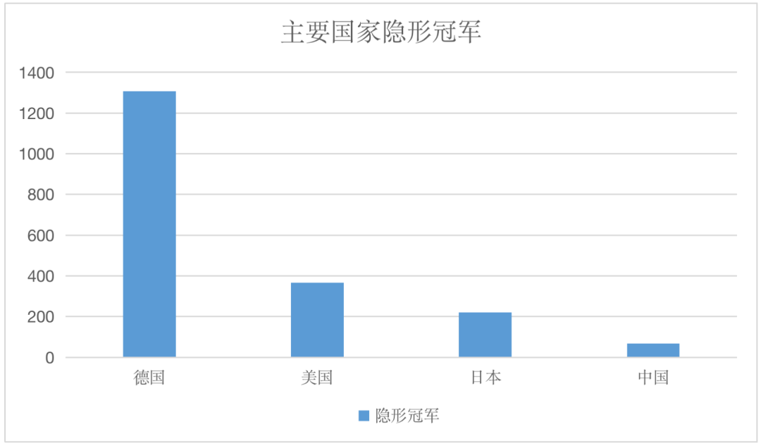 从这个图中可以看到,中国的“隐形冠军”较主要制造业国家有较大差距。