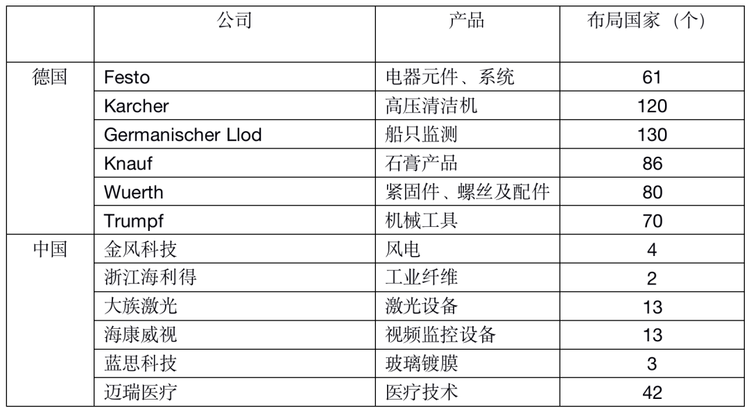 在有限的利基市场范围内,面向全球增加有效顾客的数量,为“隐形冠军”企业带来巨大增长机会。数据显示,当前“隐形冠军”企业平均拥有30家海外子公司。例如世界上最大的葡萄酒和烈酒运输公司海蓝德有73家海外分支机构,覆盖全球所有重要国家。全球高压清洗机的领头企业卡赫(Karcher),从1970年代开始进军海外市场,每年成立一家或两家海外分公司开展国际业务。如今,卡赫在23个国家拥有129家分公司。卡赫CEO曾说过:“我的目标是把分公司开遍联合国成员国。”