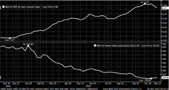 这些金融条件的放松具有现实的影响,因为全国30年平均抵押贷款利率已经从10月21日的7.16%下降到11月18日的6.67%。