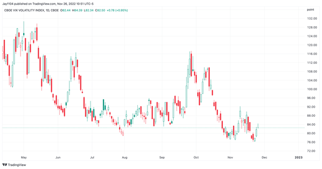 VIX指数自10月12日达到顶峰以来已经融化,从大约33下降到周五的收盘值20.5。与此同时,标准普尔500指数在同一时间内从3577点上升到4026点。