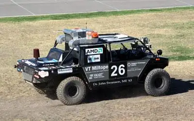 霍尔帮部分参赛队伍设计了像小型飞碟一样的车顶装置,它不停旋转,轴体嗡嗡作响,引人注目。不过,这些队伍没有夺冠,当年夺冠的的是斯坦福大学,他们主要靠摄像头传感器和卓越的计算机视觉能力。到了2007年的第三届,霍尔的“车顶飞碟”表现出了更大的优势。在完赛的6支队伍里,有5支装载了霍尔发明的“新奇玩意儿”,包括揽得冠亚军的车队。