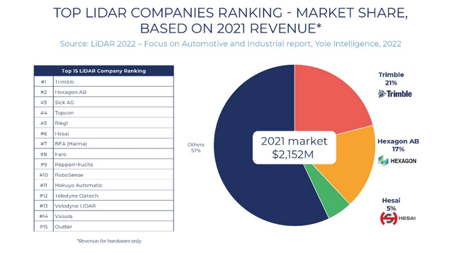 如果只看汽车领域,禾赛科技甚至已经成为总营收排名全球第一的激光雷达公司(排名前五的公司主要是工业与测绘领域的供应商)。