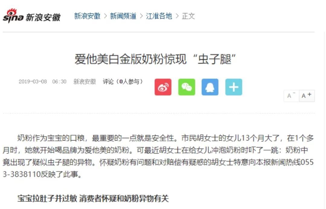 事实上,这并非爱他美第一次因为奶粉里面“长虫”,而登上热搜。