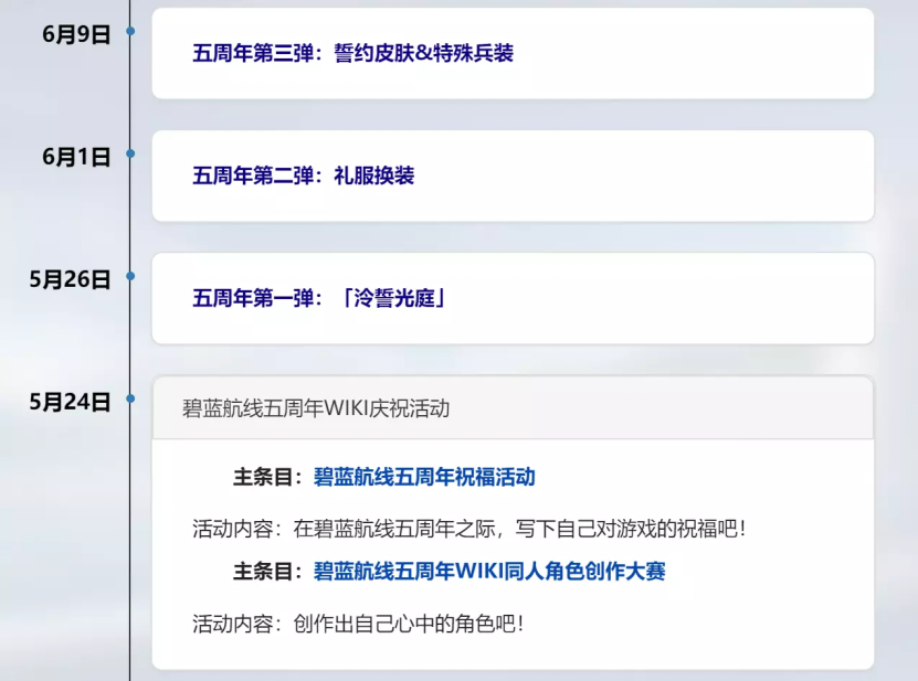 今年B站独家代理《碧蓝航线》已满5周年,仍然是AppStore畅销榜Top5,注册玩家突破2000万。B站抓住机会,福利一波接一波,庆祝五周年长达半个月,可以说很用心做营销了。