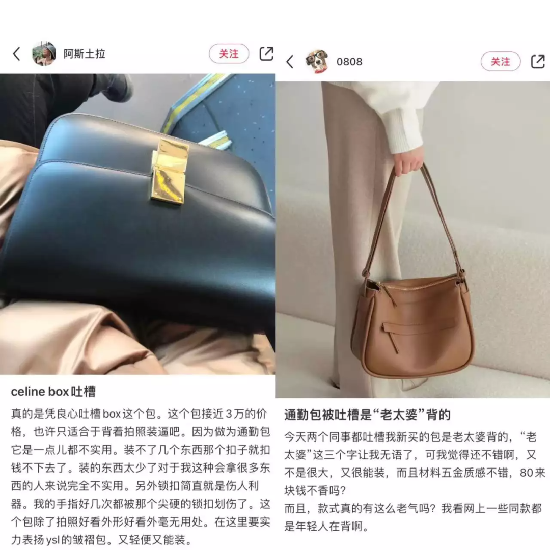 据观察,主要评测角度围绕材质是否耐用、外形是否时尚、整体结构是否结实等大牌通勤包痛点展开。
