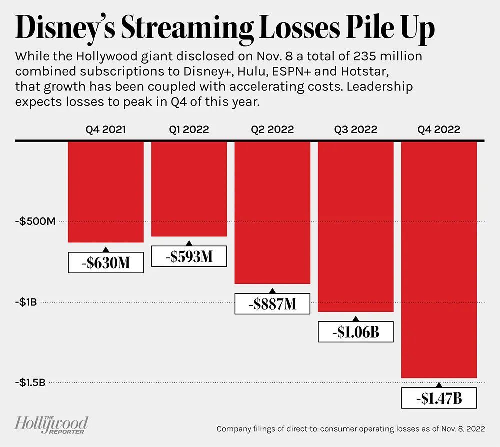 流媒体业务块本季度净亏损14.7亿美元,比上年同比糟糕两倍,带累了季度总净营收比预期低了近10亿美元。