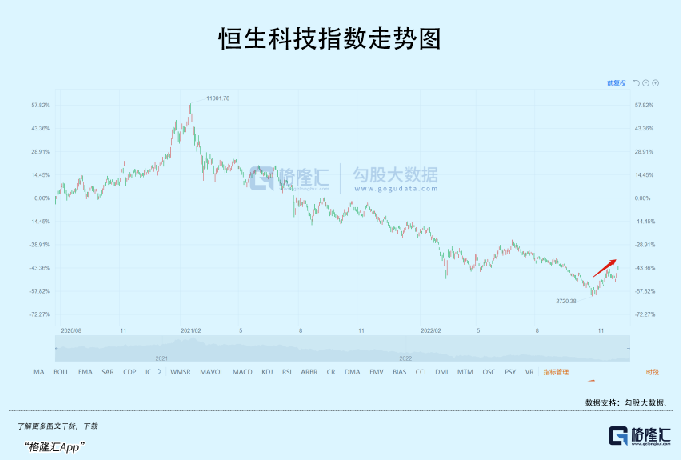 科技板块同样如此,就拿恒生科技板块来说,虽然恒生科技指数在过去一个月内,强势反弹近50%,但也只有不到4000点,回到9月份的位置而已。