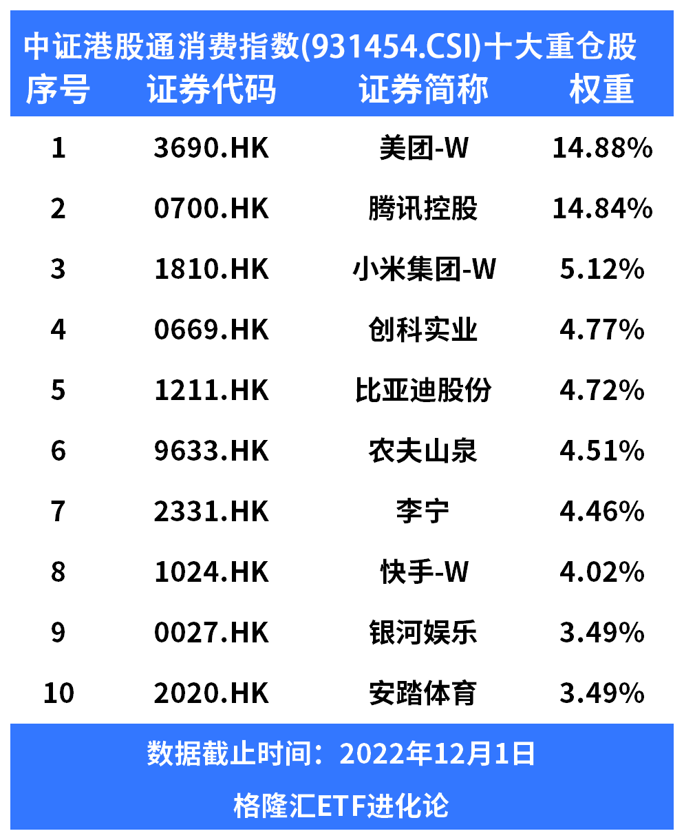 又如香港消费ETF(513590),其跟踪的是中证港股通消费指数(931454.CSI),从大消费主题内选股,覆盖了必须消费、可选消费,以及面向个人消费者的互联网服务等行业。该ETF覆盖了A股所稀缺的标的,如博彩、连锁餐饮以及运动服饰板块,和国内消费指数行业形成有效互补,从而解决国内消费指数行业不充足的问题。