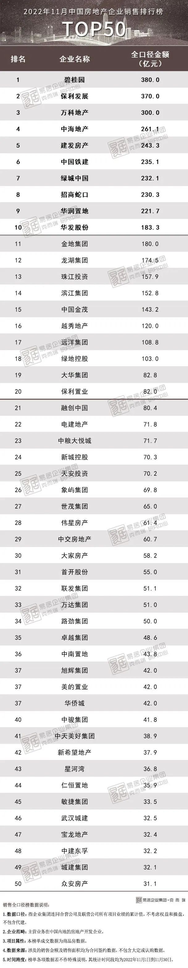 11月百强房企近4成业绩环比增长,整体市场继续探底