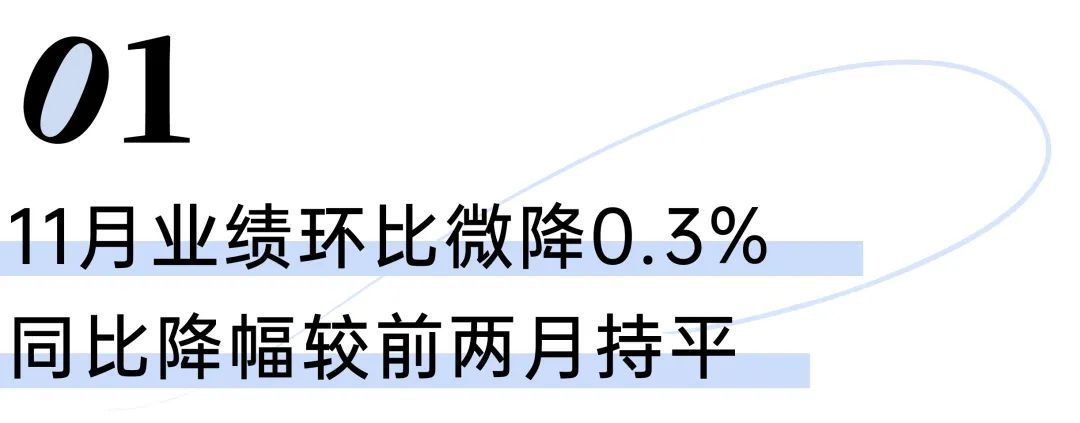 百强房企单月销售规模环比微降0.3%;同比降低25.5%,降幅较9、10两月基本持平。截至11月末,多数企业目标完成率不足80%,且大幅低于往年同期。