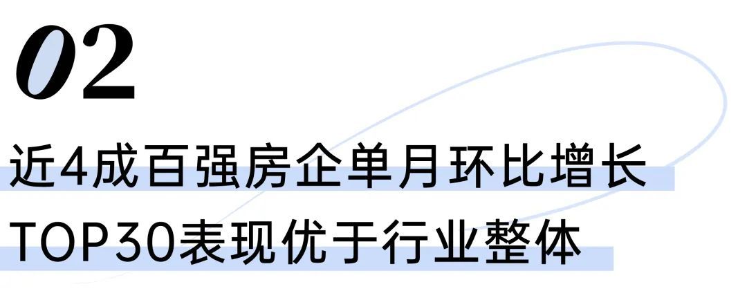TOP30房企表现优于行业整体,仅1家企业的单月业绩环比降幅高于50%,其余企业的环比降幅均在30%以内。