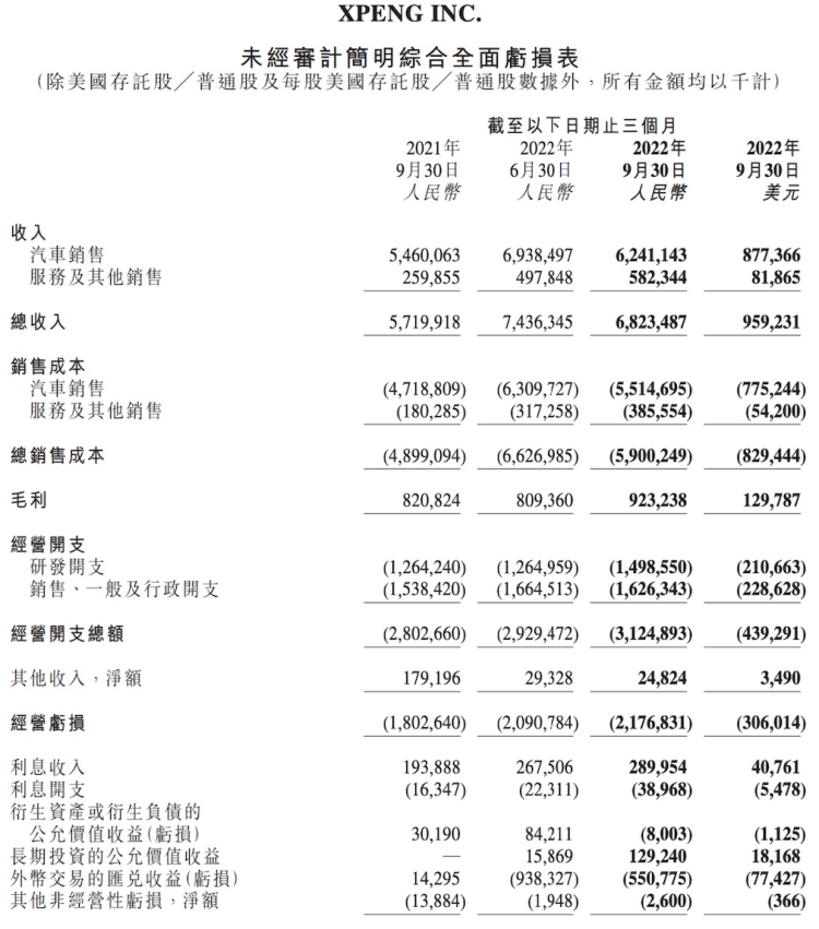 11月30日,小鹏汽车发布了“预期”中的Q3财报。