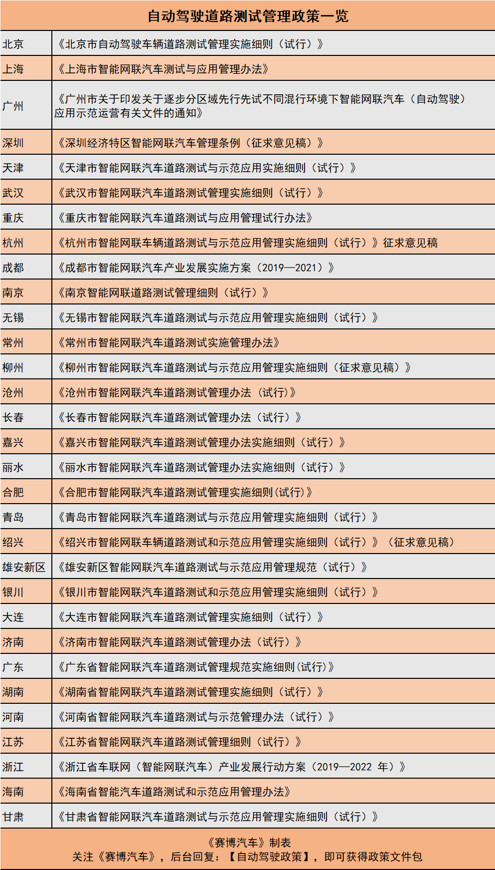 根据《赛博汽车》不完全统计,全国共有30余个省市发布了智能网联汽车道路测试管理办法,在不同程度的进行自动驾驶测试运营。尽管各地方案有所不同,但整体来看,都比工信部要求更加宽松。