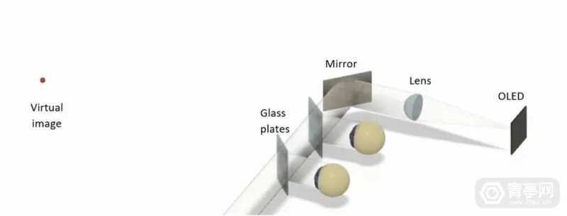 据青亭网了解,OpenAR 1.0的光学部分由半反半透的平凸镜(一面凸一面平)和OLED微显示屏组成,光路为同轴,显示屏的光源穿过透镜中心到达镜面,然后再反射入人眼。OpenAR称,这种光学的原理与红点瞄准镜类似,区别是它专为双眼设计。值得注意的是,OpenAR 1.0的瞳距可调,而且只需要旋转正面的螺钉,就能调整AR图像的视觉距离。