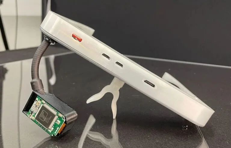 为了将AR更好的固定在空间中,OpenAR 1.0配备了超声波传感器,来测量空间距离。OpenAR表示:你也可以改变这种测距方式,改为其他传感器,或手机应用。