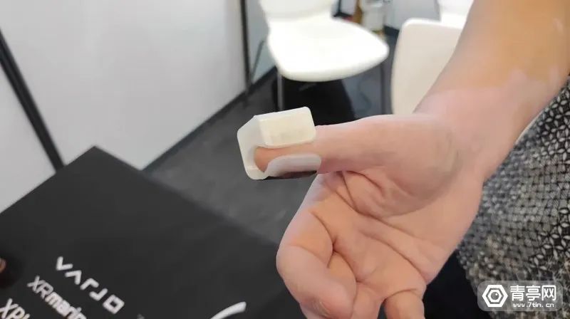 交互方式上来看,这个指套可追踪拇指和食指的摩擦动作,从而触发不同的交互,比如滑动菜单、选择目标等功能。而这些功能可用来控制AR应用和菜单,快速触发前进、后退、跳过等功能,更好的控制媒体播放器。相比于光学手势追踪和手柄,指套使用起来更加方便,不需要举起手,只需要动动手指就能操控。