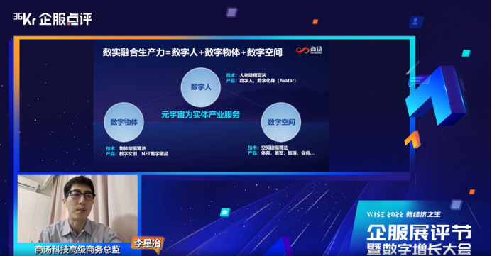 元宇宙的火热引发了各个行业的关注与探讨,在WISE 2022 企服展评节暨数字增长大会上,来自商汤科技高级商务总监李星冶介绍了AI 技术与元宇宙结合带来的应用与实践。