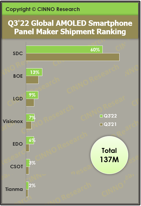 虽然我国的OLED显示技术稍逊于三星和LG,但凭借价格优势,我们还是取得相当不错的增长。CINNO Research数据显示,今年第三季度,国产智能手机OLED面板在全球市场的份额达到30%,相较去年同期的20%增长超过10%。