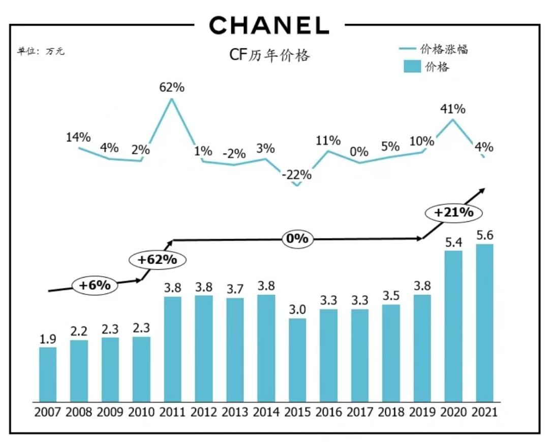 香奈儿CF系列价格上涨趋势,图源优奢易拍行情研究院