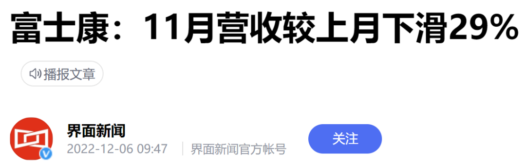 这波疫情让富士康今年11月的营收大幅下滑