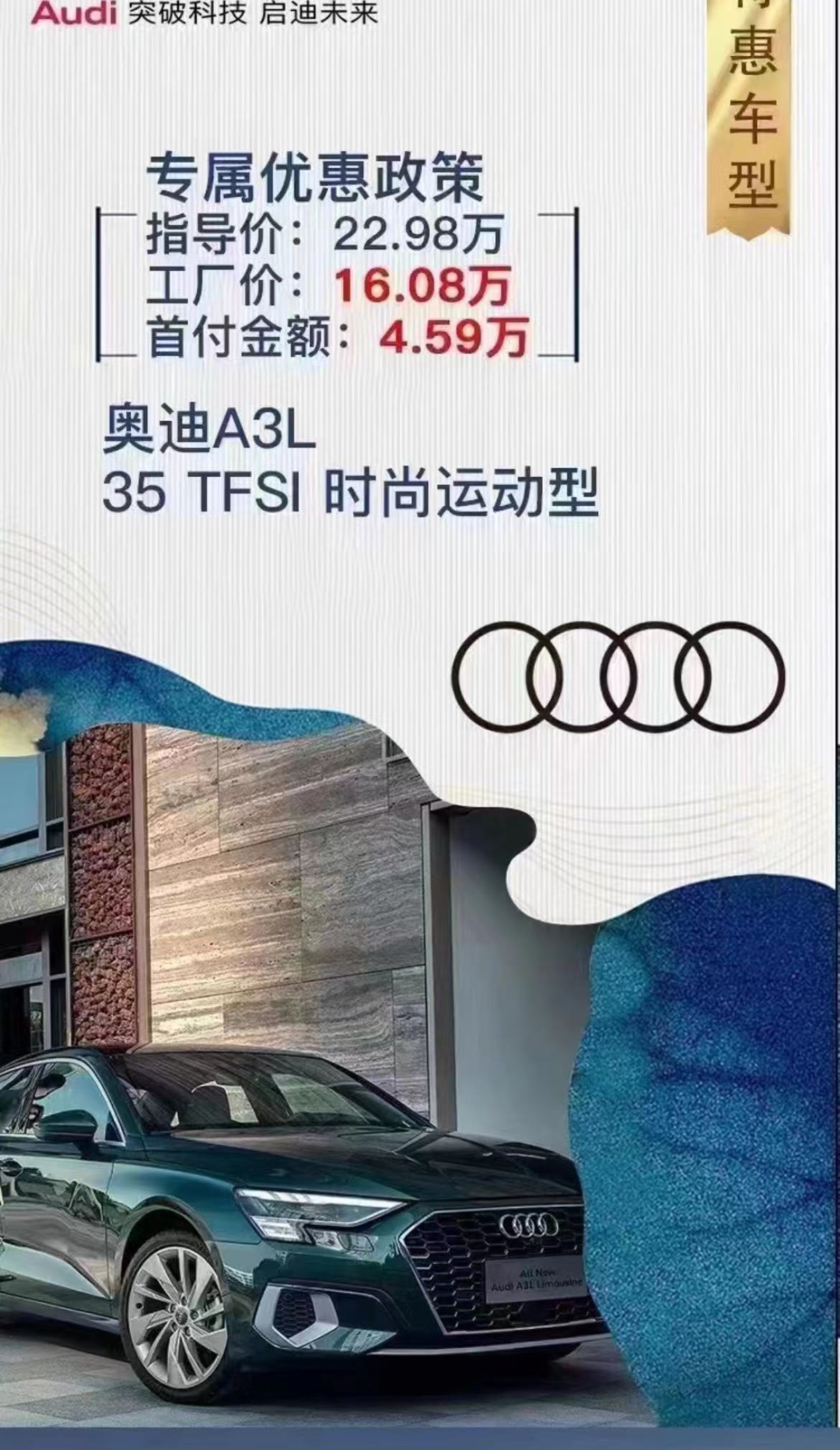 某地奥迪4s店打出来的海报:奥迪a3裸车16万。