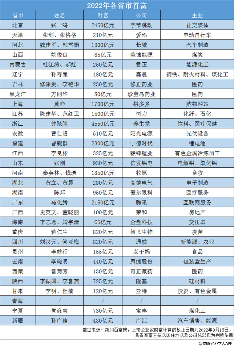 虽然他们所掌舵的企业,都不是所处省份营收最大的公司,但这并不妨碍他们成为该省最富有的人。
