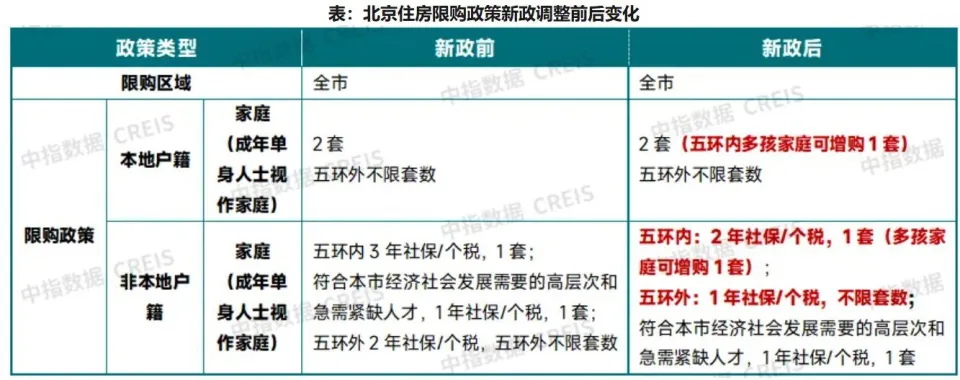 北京市住建委等多部门联合发布《关于进一步优化调整本市房地产相关政策的通知》,放宽非京籍购房人群限购政策,商业性住房贷款利率将不再区分首套住房和二套住房,公积金二套房最低首付比例由30%改为25%。业内认为,核心城市在稳定全国市场中扮演着“压舱石”和“领头羊”的双重角色,一线城市加入政策优化行列,意味着“因城施策”的深度和广度正在拓展。北京之后,预计沪深等城市将跟进调整。