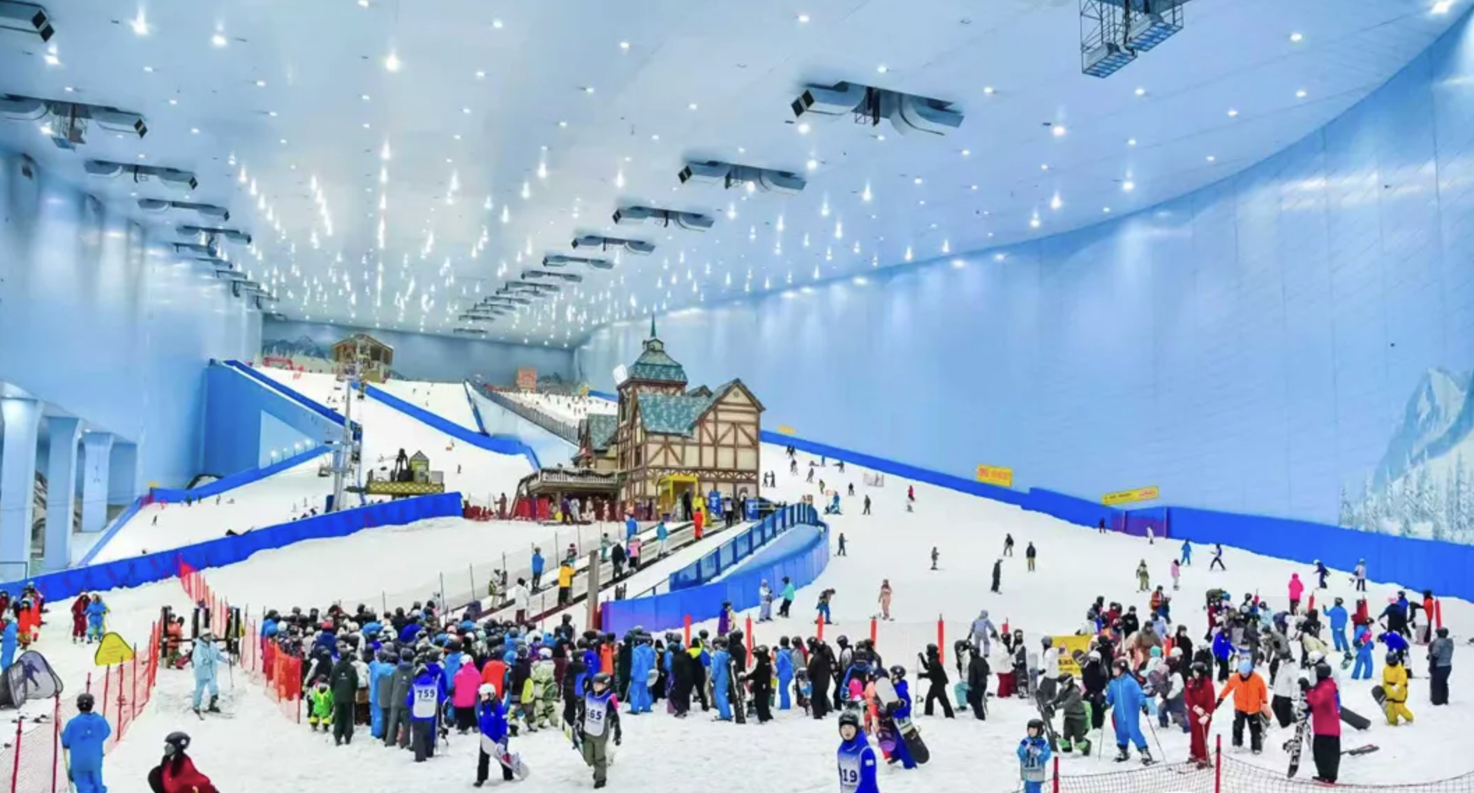 ②东南亚游客,挤满滑雪场