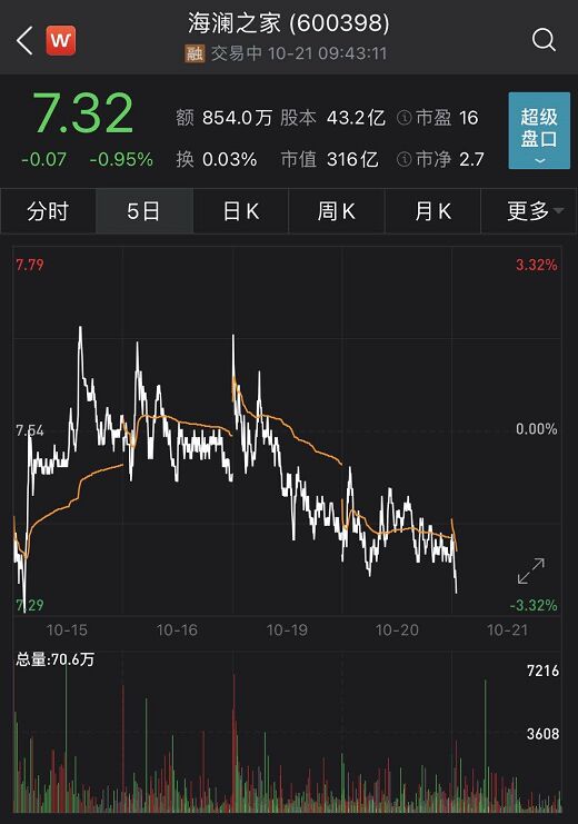 海澜之家近期股价走势