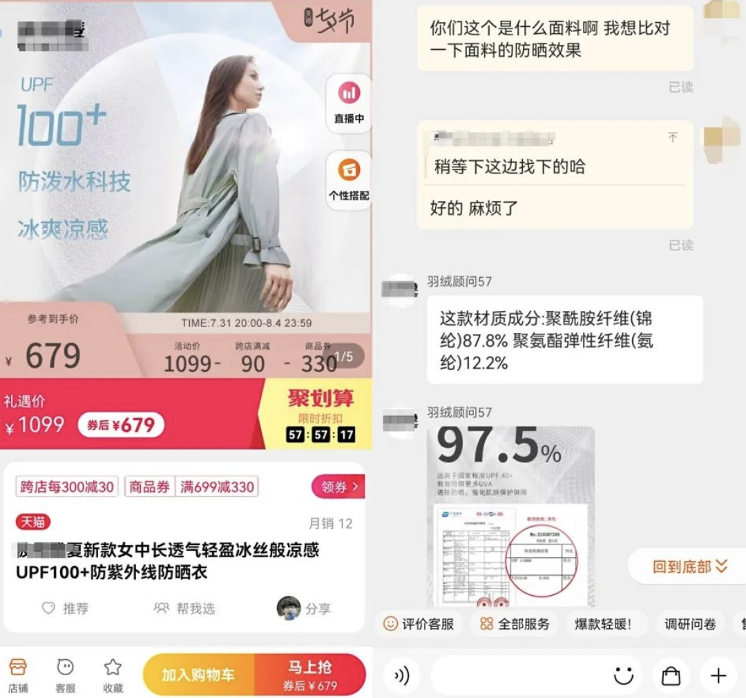 此外,做高UPF值也并没有什么技术门槛,商家有很多方式可以去拉高数值。