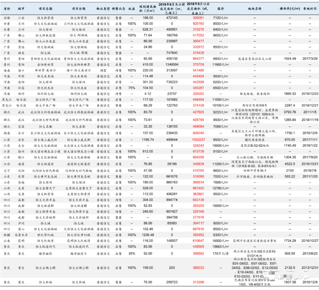重要的是,这还只是不完全统计,中指院统计的项目明细是基于其监测的城市,以一二线、核心三线城市为主,而恒大处于四五线等城市的项目未纳入统计。